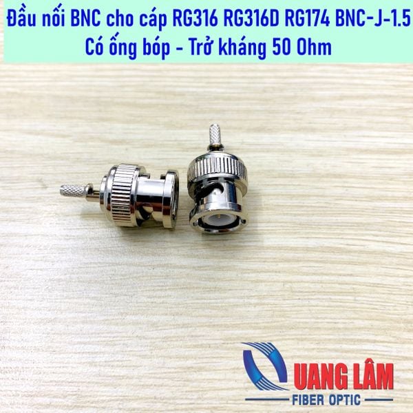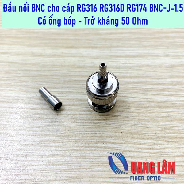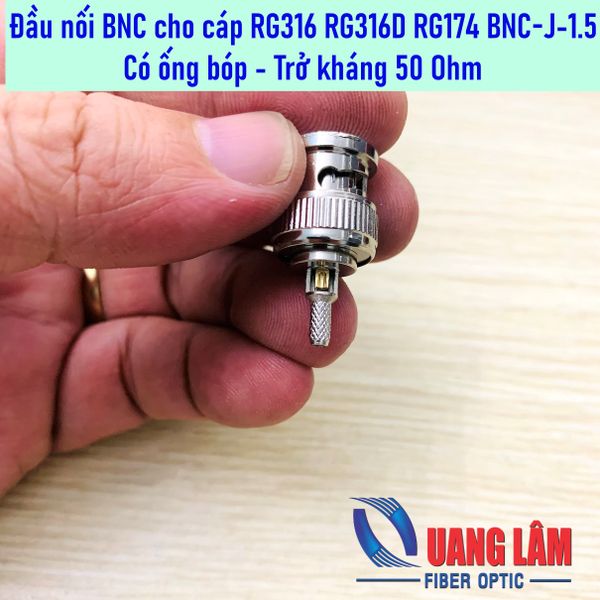 - Đầu Jack 50Ohm, mạ niken sáng bóng, kim đồng mạ vàng. Đuôi Jack BNC xẻ rãnh tim lõi đồng cắt vát để dễ dàng hàn lõi dẫn, có ống bóp đồng dùng kìm lục giác bóp tiếp mát phần vỏ với lưới bọc kim dây đồng trục RG316, RG174 v.v.