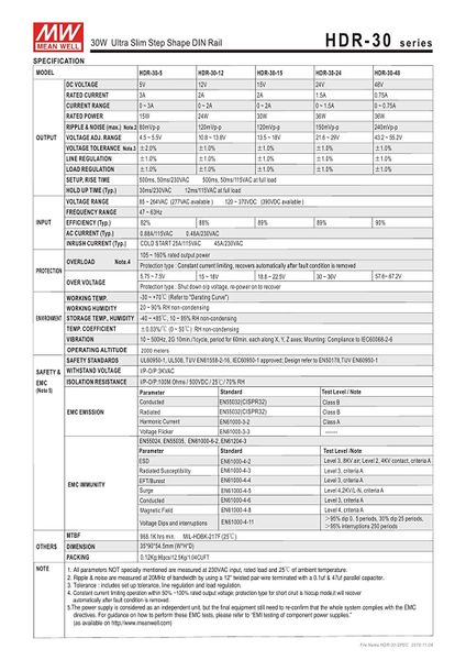 Bộ đổi nguồn điện công nghiệp HDR-30-5 AC220V - DC5V 15W 3A gắn thanh DIN Rail - Meanwell