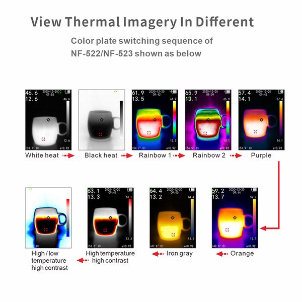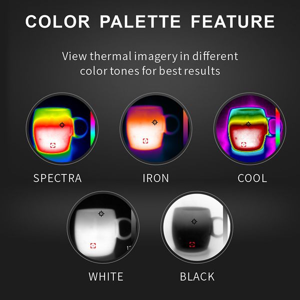 Color Plate: White heat / Black heat / Rainbow 1 / Rainbow 2 / Purple / Orange / Iron gray / High temperature high contrast / High and low temperature high contrast