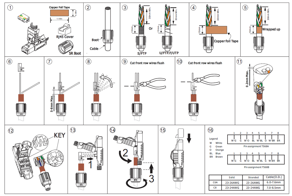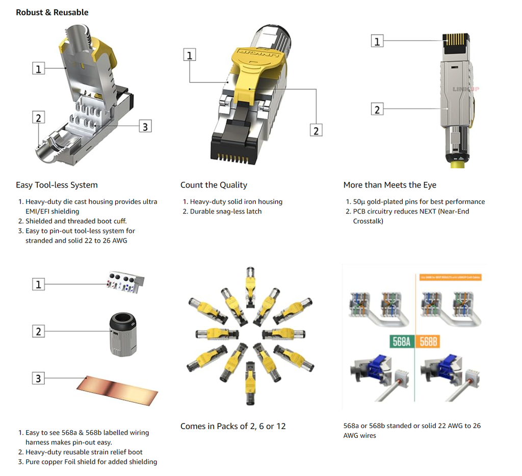 - Tương thích với các loại dây mạng 22AWG / 23AWG / 24AWG.