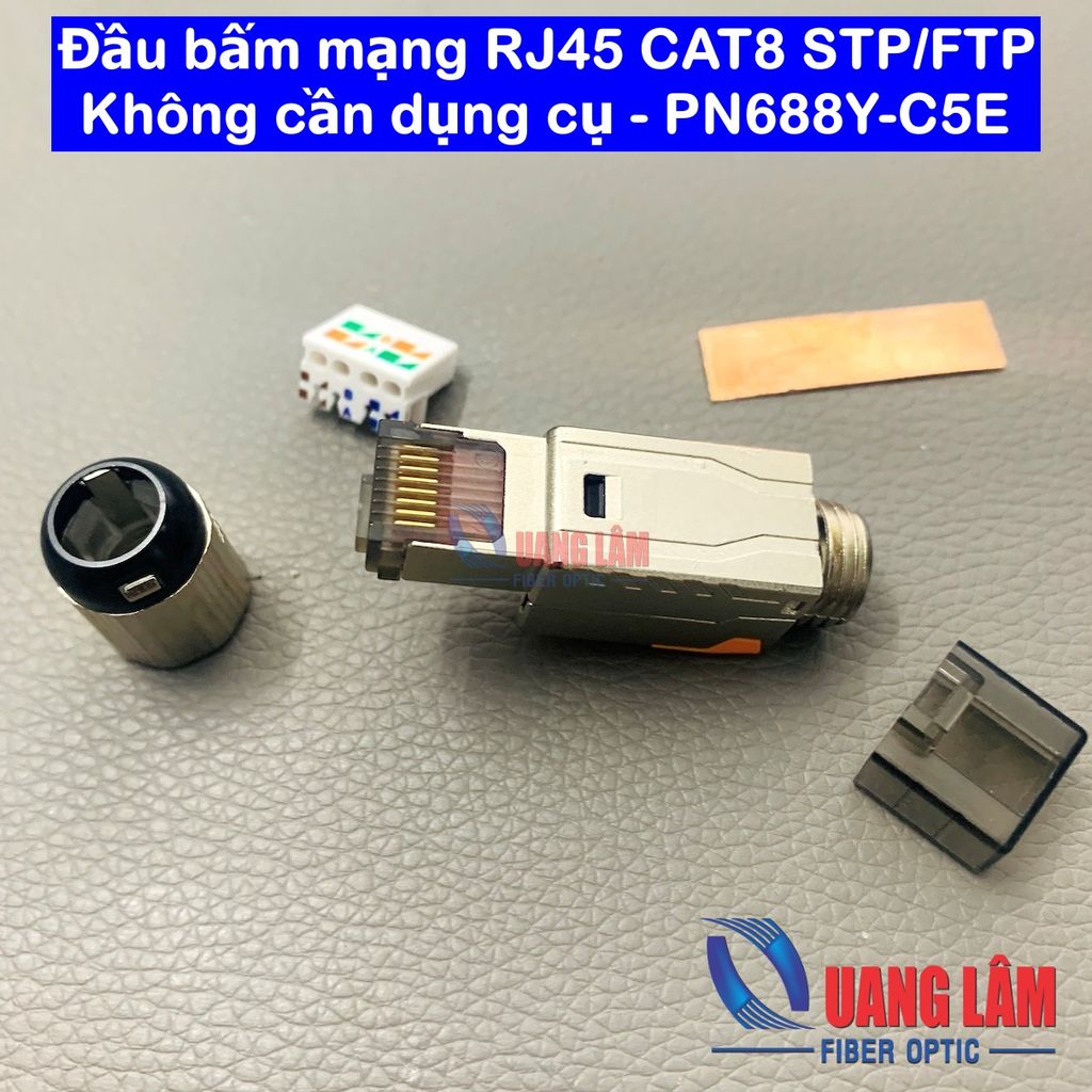 🧵 Tương thích dây mạng: - Hỗ trợ dây lõi solid và stranded. - Tương thích với các loại dây mạng 22AWG / 23AWG / 24AWG. 🔋 Thông số điện: - Điện trở tiếp xúc: ≤ 20mΩ - Điện trở cách điện: ≥ 250MΩ @ 100V DC - Tần số hoạt động: 1200MHz - Tốc độ: 10->40Gbps - Chịu được điện áp: DC1000V / AC700V RMS 60Hz - Chuẩn kết nối Cat8: Tuân thủ ANSI/TIA/EIA 568B.2-10 🌡️ Môi trường hoạt động: - Nhiệt độ lưu trữ: -40°C đến +70°C - Nhiệt độ vận hành: -10°C đến +60°C 🔩 Thông số cơ học: Vật liệu : Vỏ: Zinc alloy Chân tiếp xúc: Đồng Photpho mạ vàng 3µ” Chân terminal IDC: Đồng Photpho mạ kẽm Độ bền RJ45: Tối thiểu 750 lần kết nối Độ bền terminal IDC:Tối thiểu 250 lần kết nối