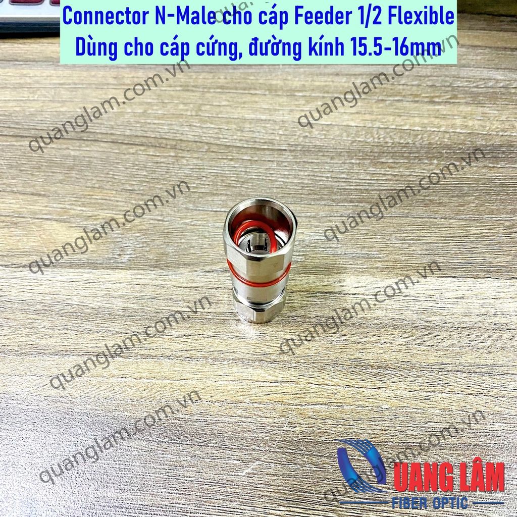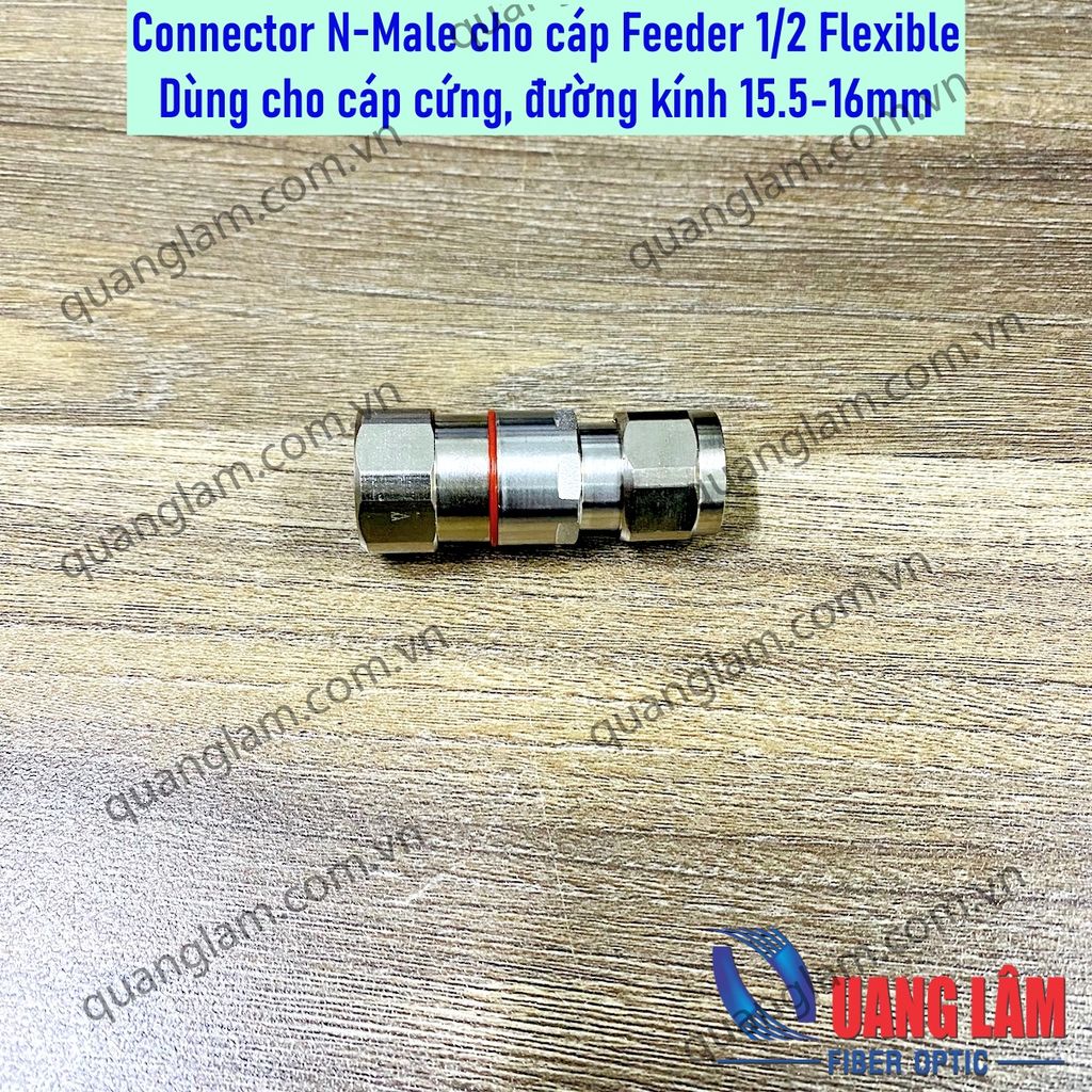 Đầu nối N-Male cho cáp Feeder Flexible cáp cứng đường kính 15.5-16mm - Đầu nối N Male - Dùng cho cáp mềm Feeder 1/2 Flexible, cáp cứng đường kính vỏ ngoài 15.5-16mm - Trở kháng: 50 Ohm - Làm bằng thép cứng không gỉ.
