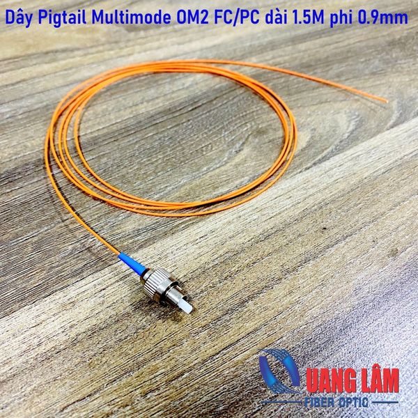 - Dây nối quang Multimode OM2 FC/PC đường kính 0.9mm, có một đầu được gắn với đầu nối cáp quang và một đầu để nguyên chờ mục đích sử dụng