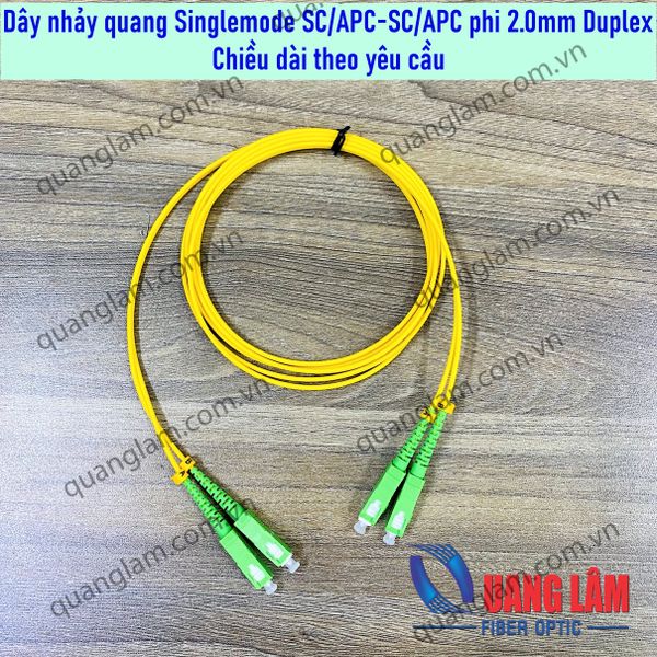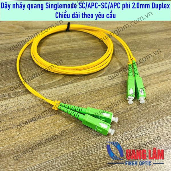 Dây nhảy quang Singlemode SC/APC-SC/APC phi 2.0mm, Duplex, chiều dài theo yêu cầu