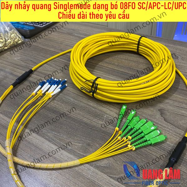 Dây nhảy quang Singlemode dạng bó 08FO SC/APC-LC/UPC Fanout phi 2.0mm - Chiều dài theo yêu cầu Chiều dài làm theo yêu cầu - Giao hàng trong ngày