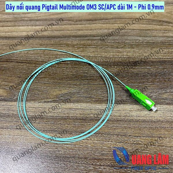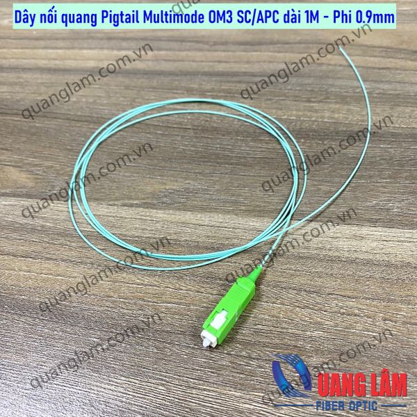 - Dây nối quang Multimode OM3 SC/APC đường kính 0.9mm, có một đầu được gắn với đầu nối cáp quang và một đầu để nguyên chờ mục đích sử dụng