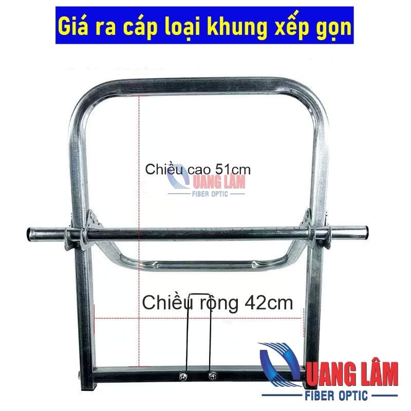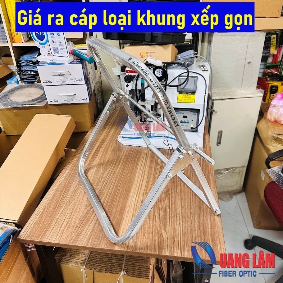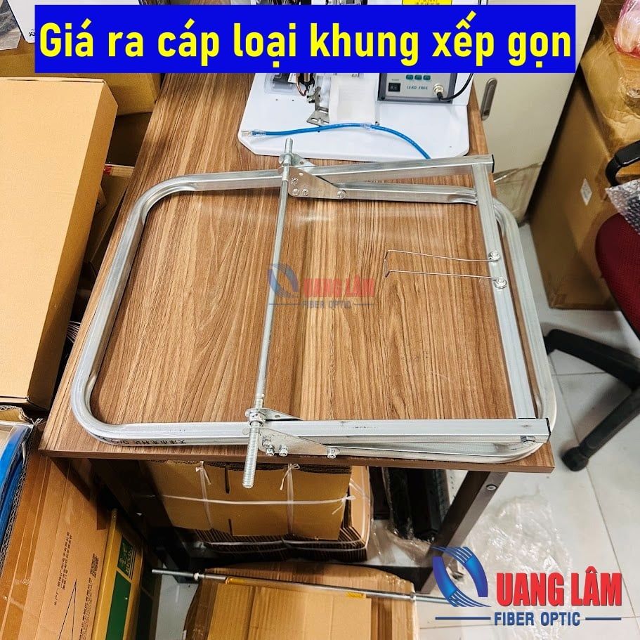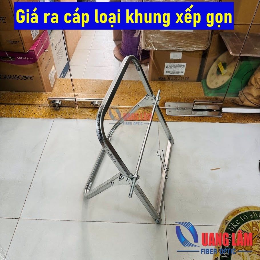 Giá ra cáp loại khung xếp gọn- Chất liệu Inox 100%, độ bền cao- Dạng khung xếp gọn, dễ dàng tháp lắp mà mang theo.- Dùng để gắn cuộn cáp thuê bao quang 1FO hoặc dây điện- Giúp ra cáp và kép cáp dễ dàng.