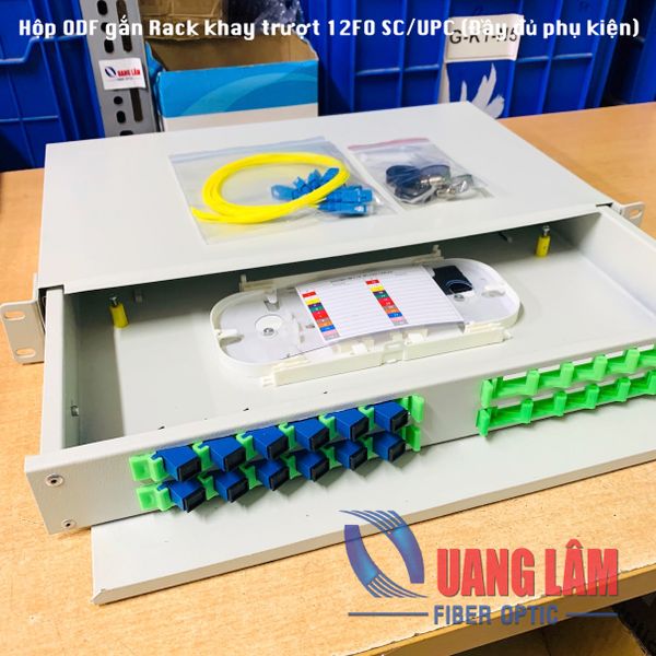 Hộp ODF gắn Rack khay trượt 12FO SC/UPC (Đầy đủ phụ kiện)