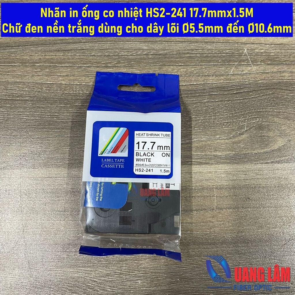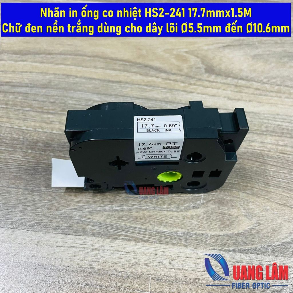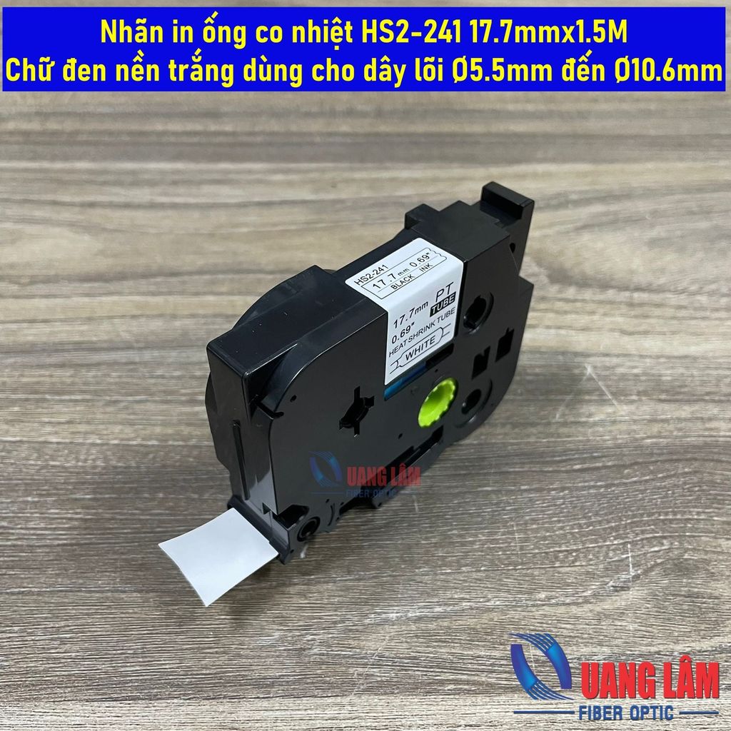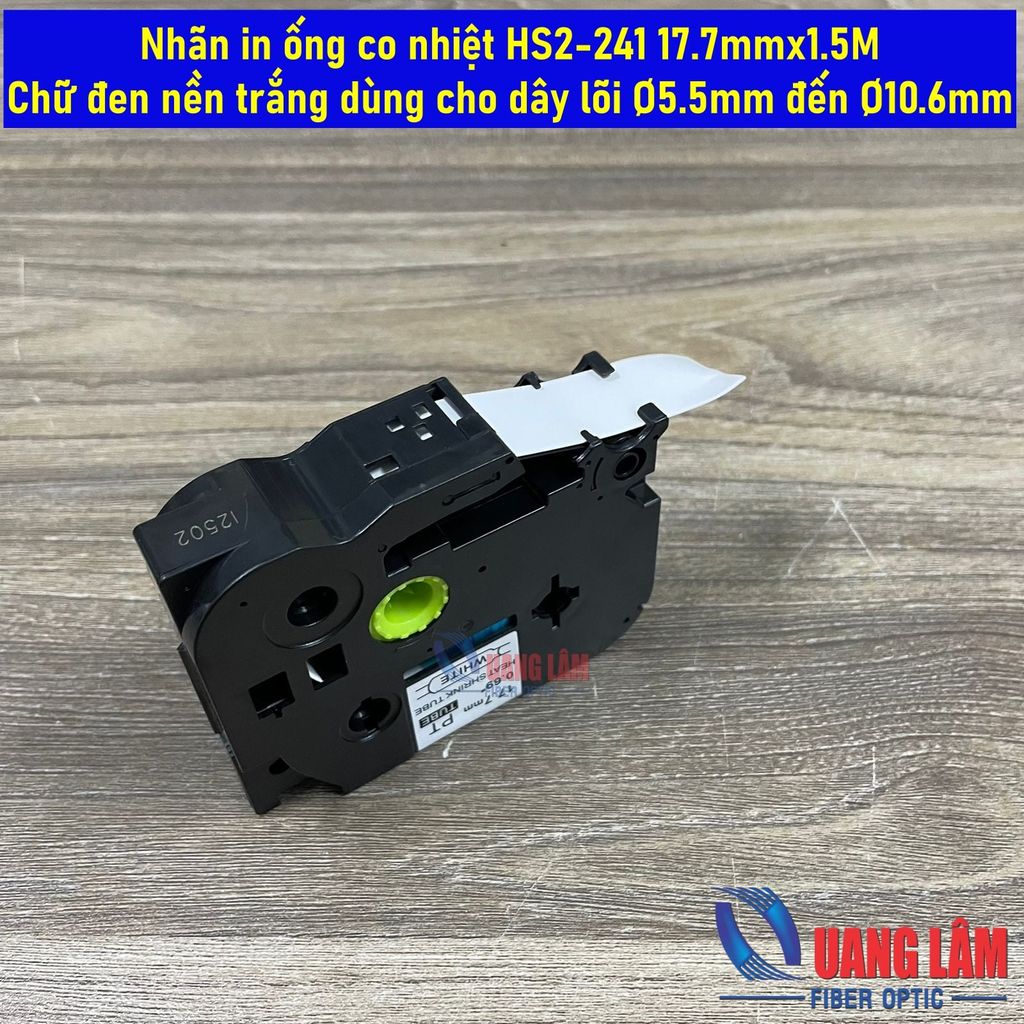 Nhãn in ống co nhiệt HS2-241 17.7mmx1.5M - Chữ đen nền trắng dùng cho dây lõi Ø5.5mm đến Ø 10.6mm Cho máy in nhãn Brother