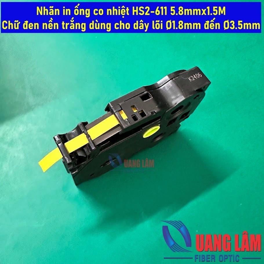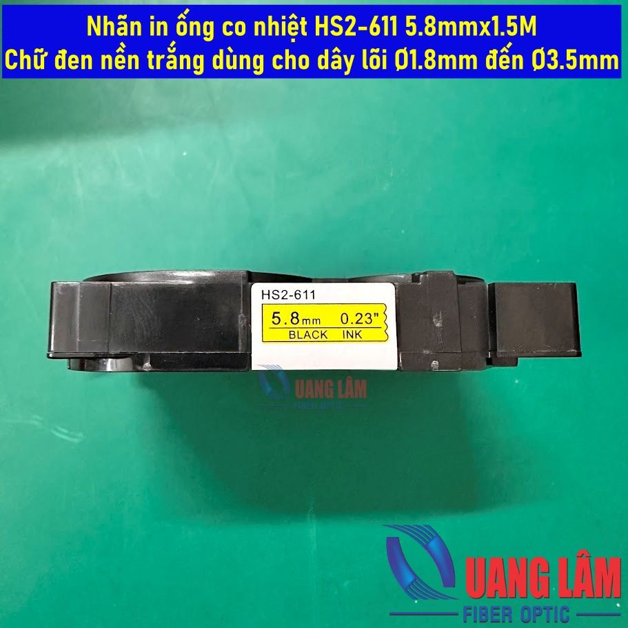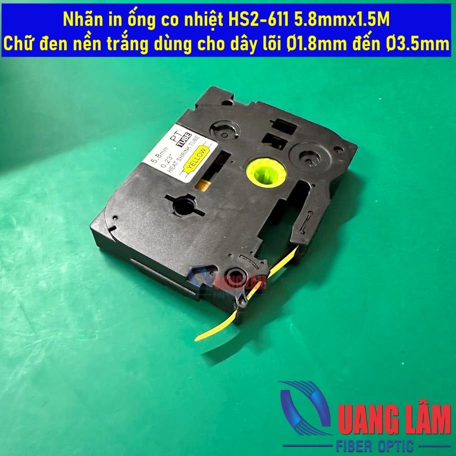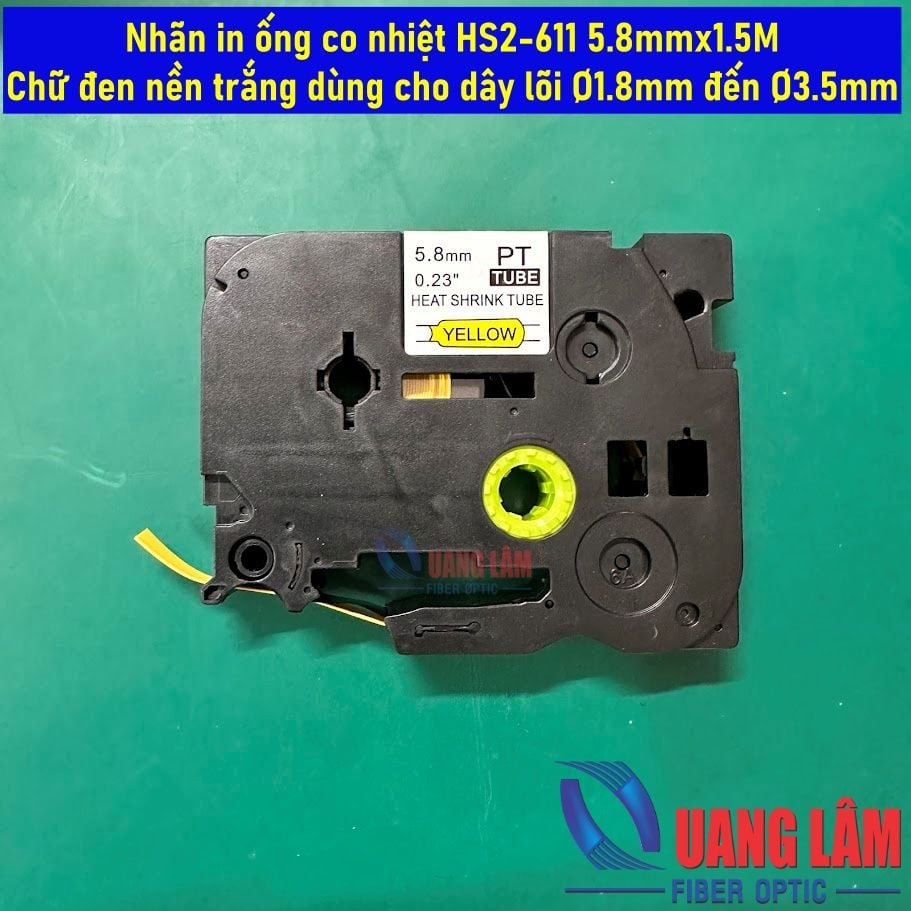 Nhãn in ống co nhiệt HS2-611 5.8mmx1.5M - Chữ đen nền trắng dùng cho dây lõi Ø1.8mm đến Ø3.5mm cho máy in Brother