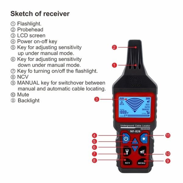 Noyafa NF-826 Professional Underground Cable Locator - Accurately Detects Cables, Electrical Wires, & Pipes Buried In Earth or Walls At A Depth Of 0.1 - 2 Meters
