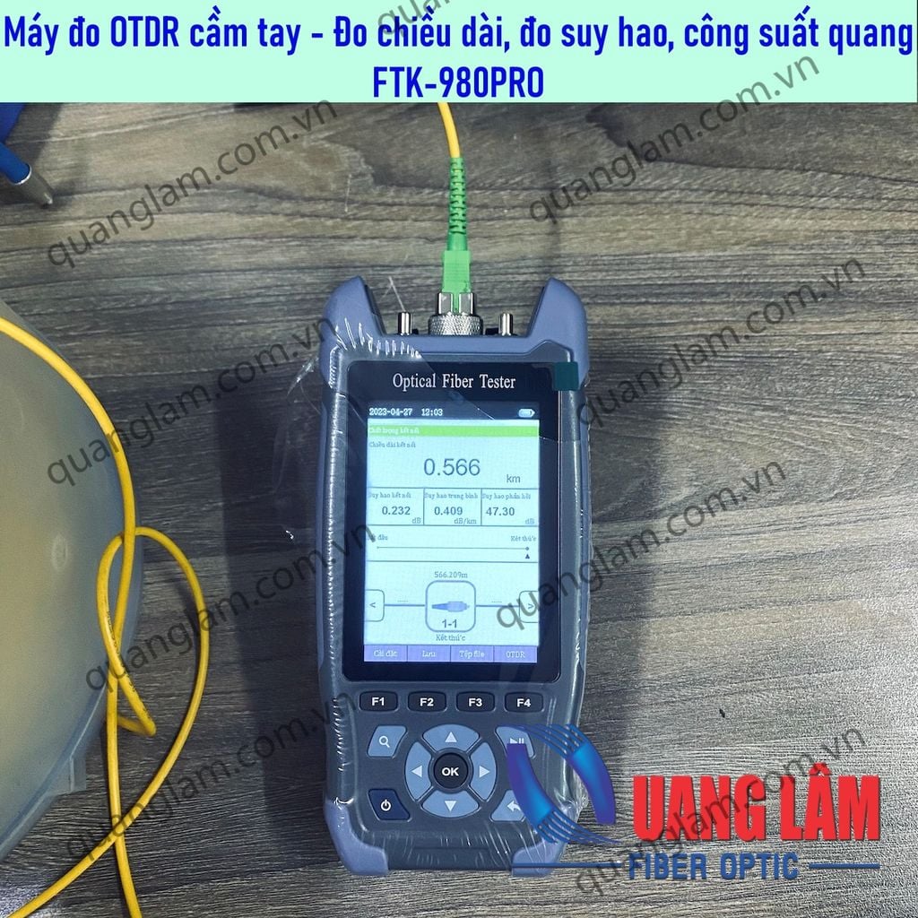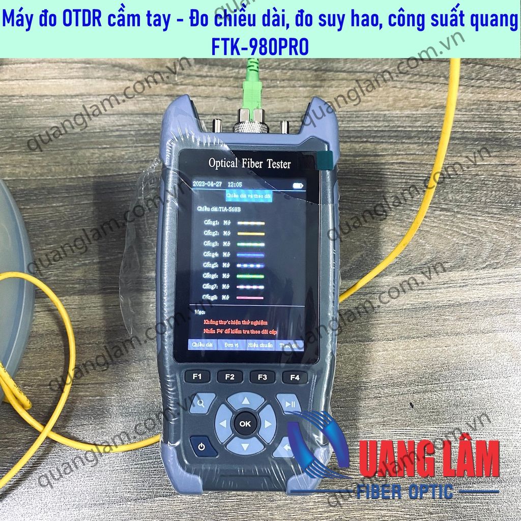 Máy đo quang OTDR FTK-980PRO, đầu đo SC/APC, Ngôn ngữ Tiếng Việt/Tiếng Anh - Đo OTDR biểu đồ - Chức năng sự kiện Event Map - hiển thị chiều dài, điếm nối, điểm hàn, trực quan dễ nhìn - Đo công suất quang OPM - Phát nguồn quang OLS - Phát VFL 650nm - Đo chiều dài cáp mạng / Đo sơ đồ dây mạng / scan cáp mạng / Đèn Pin ========================================================================= CÔNG TY TNHH CÔNG NGHỆ QUANG LÂM Liên hệ ĐT hoặc zalo số 0949.10.22.88 (Ms. Hòa) hoặc 0915.00.44.77 (Ms. Bảo Châu) hoặc 0903.888.272 (Ms. Linh) để được hổ trợ. Địa chỉ kho hàng: 160/1/67 Phan Huy Ích, P.12, Q. Gò Vấp, Tp Hồ Chí Minh