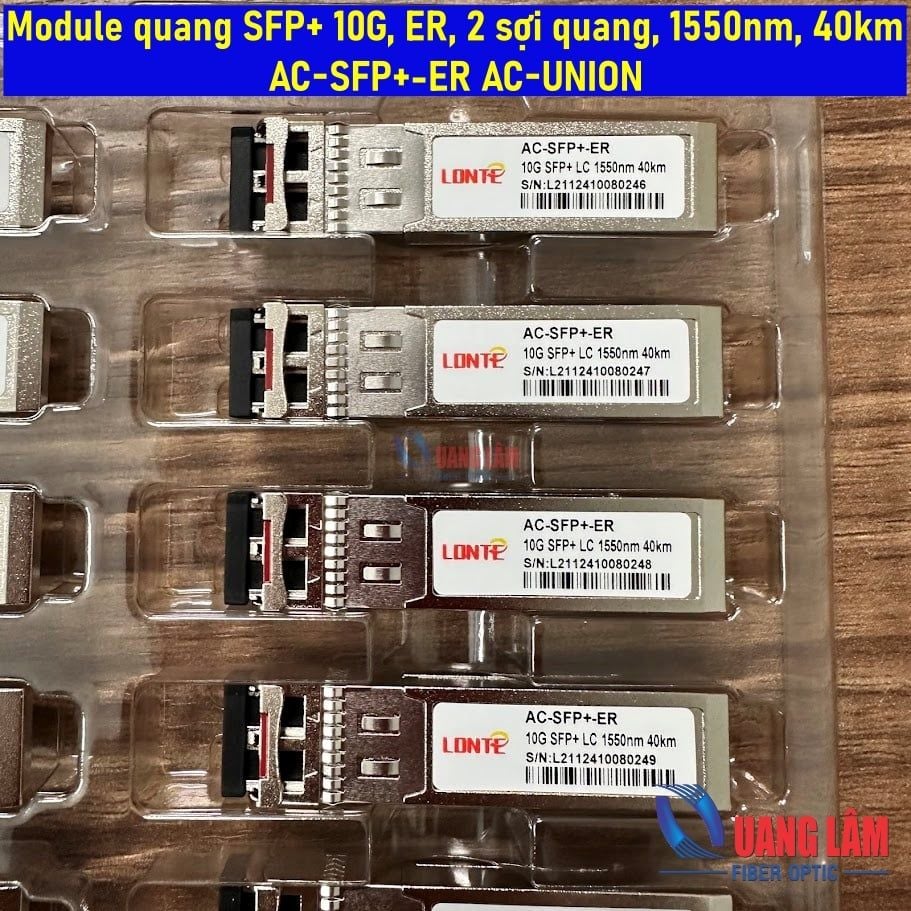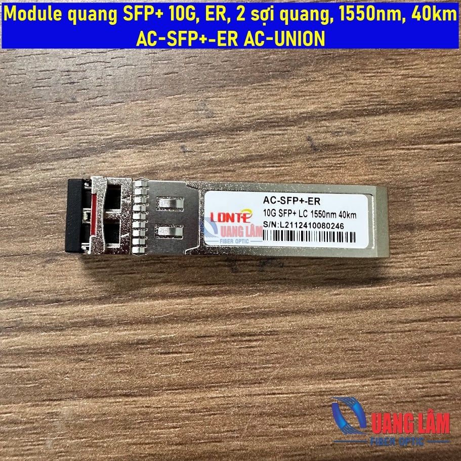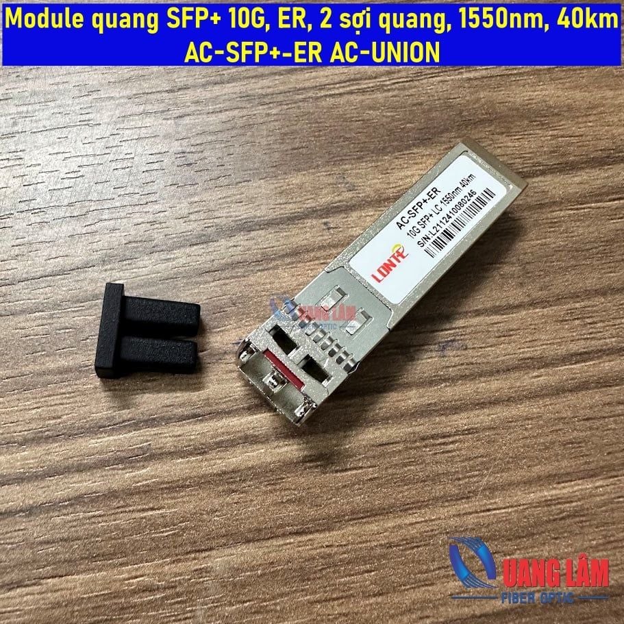 Module quang AC-SFP+-ER là loại SFP+ 10GBASE-ER dùng cho đường truyền Singlemode với khoảng cách tối đa 40km, bước sóng 1550nm, đầu nối LC duplex. Đây là giải pháp phổ biến cho mạng MAN/WAN và hệ thống backbone doanh nghiệp cần truyền tải tốc độ cao trên khoảng cách xa.