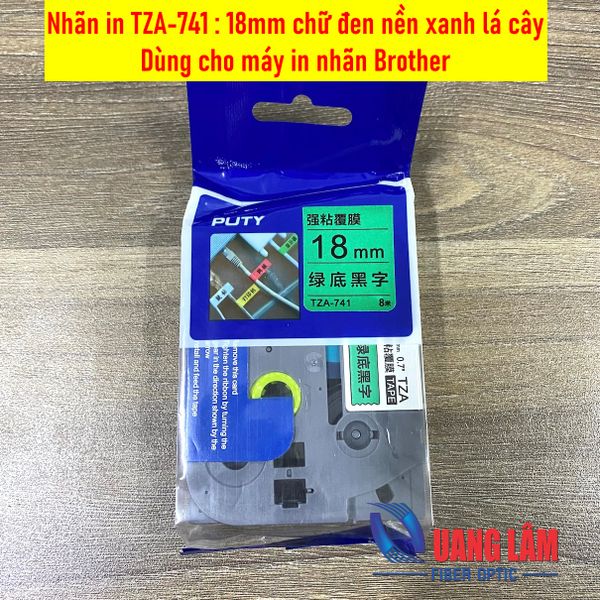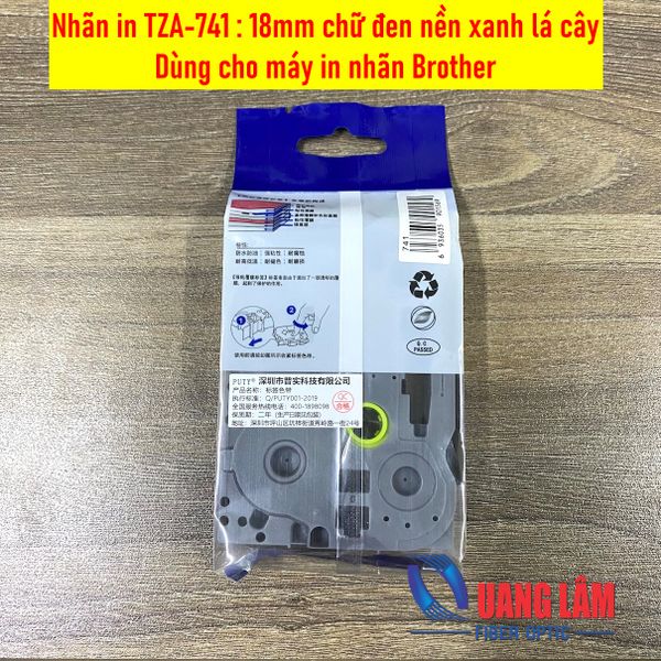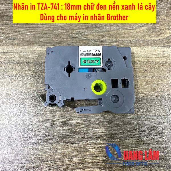 *Nhãn in TZA-741, Loại tiêu chuẩn, Chữ đen trên nền xanh lá, Khổ 18mmx8M