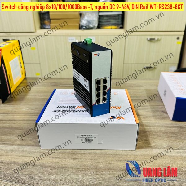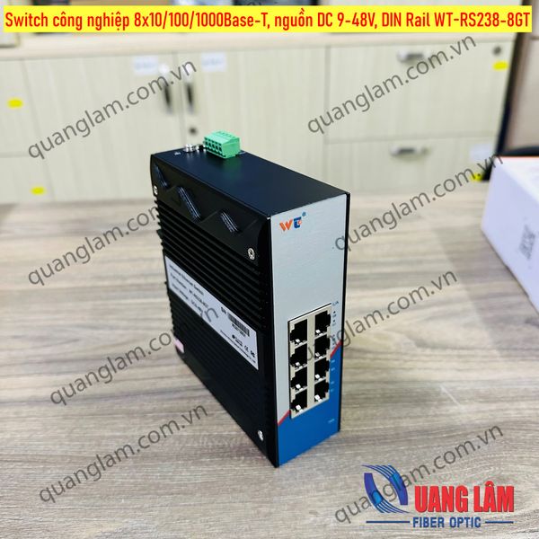 Switch công nghiệp 8x10/100/1000M RJ45 DIN Rail, DC9-48VDC, WT-RS238-8GTThông số kỹ thuật: