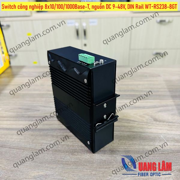Switch công nghiệp 8x10/100/1000M RJ45 DIN Rail, DC9-48VDC, WT-RS238-8GTThông số kỹ thuật: - 08 Cổng mạng RJ45 10/100/1000M Base-T - Tiêu chuẩn: IEEE 802.3 10BaseT, IEEE 802.3u 100BaseT, IEEE 802.3ab 1000BaseT. - Switching Capacity: 16Gbps. - MAC Address Table: 2K. - LED indicator: PWR, L/A. - Vỏ nhôm giúp giảm nhiệt tối đa - Gắn trên thanh DIN Rail. - Nguồn điện vào: DC9-48V (Nguồn kép P1,P2. Khi 1 trong 2 nguồn bị sự cố thì nguồn còn lại sẽ được cấp liên tục) - Kích thước: 142 x 116 x 51 mm. - Trọng lượng chưa đóng gói: 780g. - Dải nhiệt động rộng: -40 ~ 85°C. - Xuất xứ: Hãng WINTOP - Trung Quốc. - Bảo hành: 24 tháng. ----------------------------------------------------------------------------------------------------------------------------- CÔNG TY TNHH CÔNG NGHỆ QUANG LÂM Liên hệ ĐT hoặc zalo số 0949 10 22 88 (Ms. Hòa) hoặc 0915 00 44 77 (Ms. Bảo Châu) hoặc 0903.888.272 (Ms. Linh)để được hổ trợ. Địa chỉ kho hàng: 160/1/67 Phan Huy Ích, P.12, Q. Gò Vấp, Tp Hồ Chí Minh