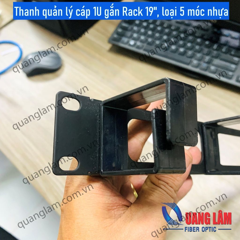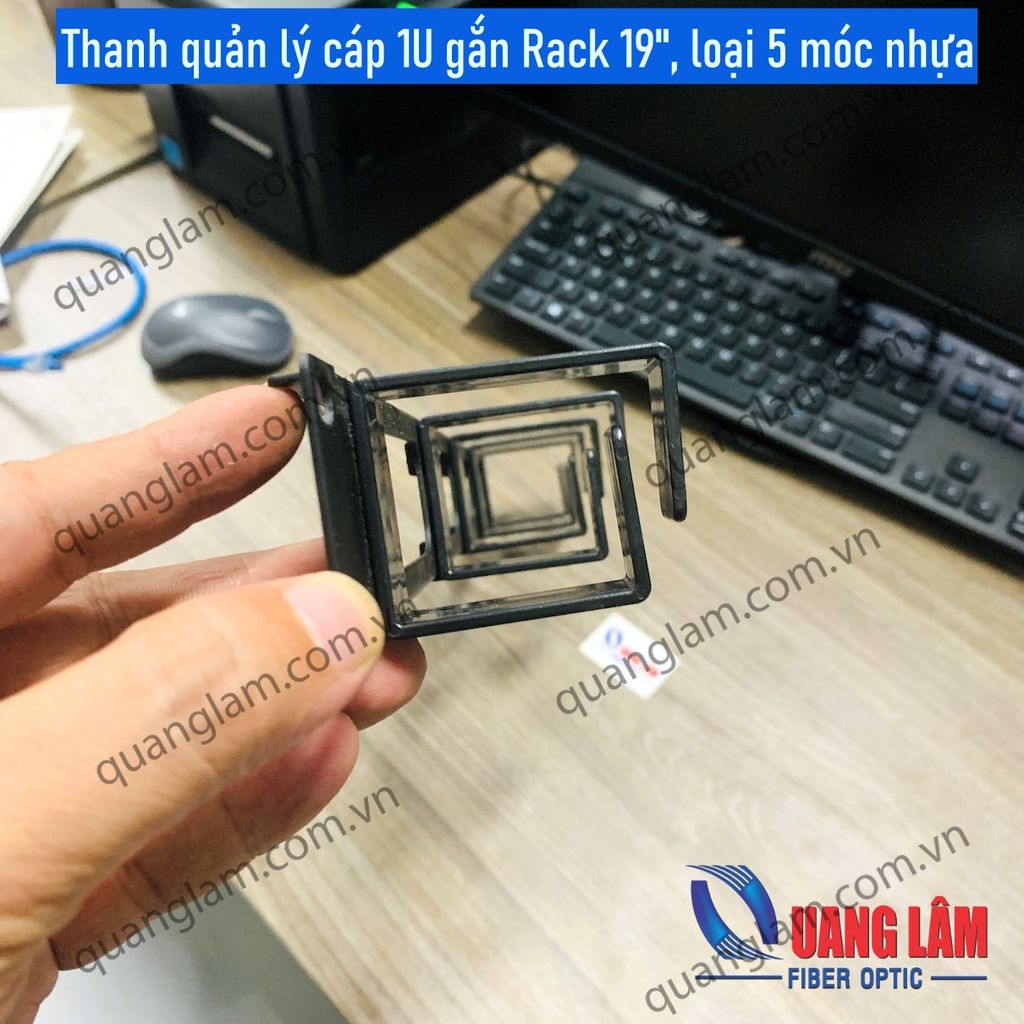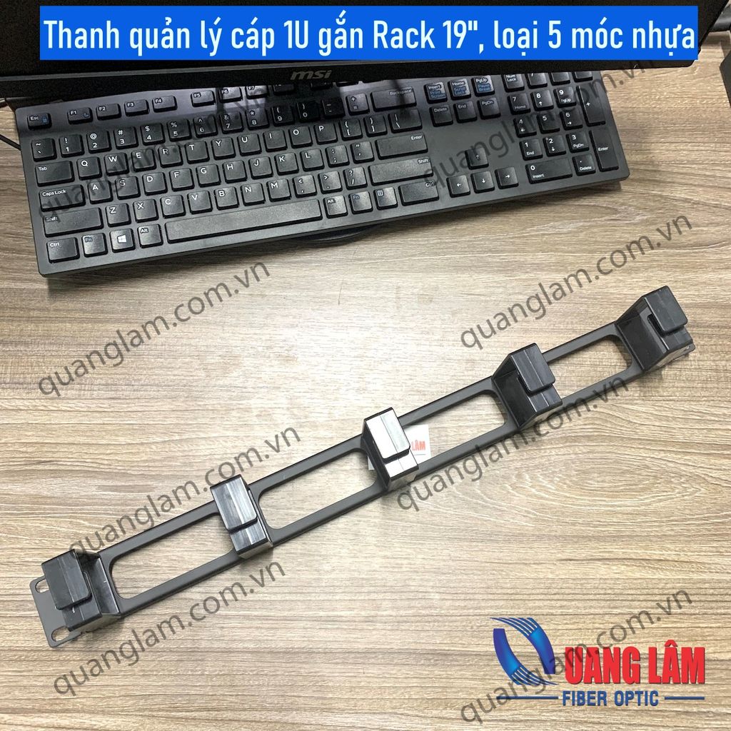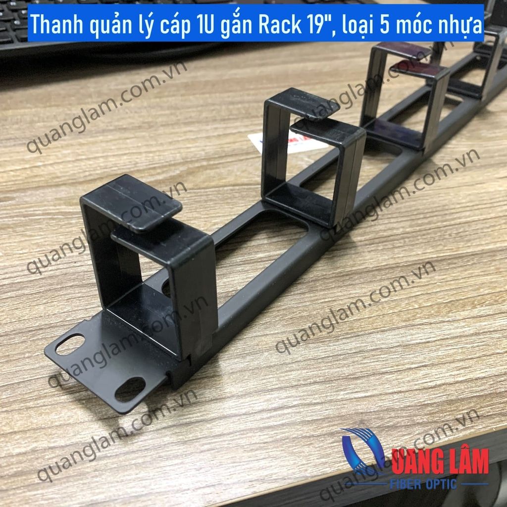 Thanh quản lý cáp 1U gắn Rack 19", loại 5 móc nhựa - Chức năng để quản lý cáp mạng, dây quang, dây điện được gọn gàng - Gắn trên Rack 19" - Chiều cao 1U - Phần đế làm bằng thép sơn tĩnh điện - Phần móc gài làm bằng nhựa dẽo để dễ dàng quản lý dây cáp.